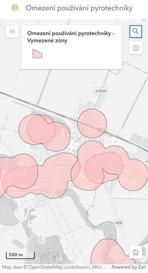 Mapa obsahuje zóny, ve kterých je zakázáno zacházet s pyrotechnickými výrobky s výjimkou kategorie F1 podle § 35b zákona č. 344/2025 Sb., kterým se mění zákon č. 206/2015 Sb., o pyrotechnických výrobcích a zacházení s nimi...