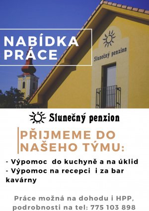 Slunečný penzion Tasovice nabízí pracovní místo. Více v přiloženém letáku.
