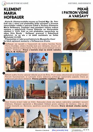 Historik Jihomoravského muzea ve Znojmě Mgr. Bc. Petr Eckl nás v rámci své přednášky blíže seznámil s životem tasovického rodáka a patrona Vídně a Varšavy sv. Klementa Maria Hofbauera.