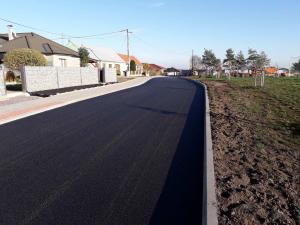 Postup prací - rekonstrukce silnice za hřištěm. První vrstva asfaltu je položena, druhá se bude pokládat 16.11.2020.