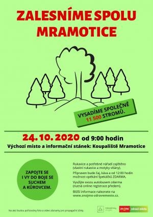 Pomozte v sobotu 24. října 2020 od 9 hodin obnovit les u koupaliště v Mramoticích. Společnými silami zde vysázíme na 11 500 sazenic stromů.
