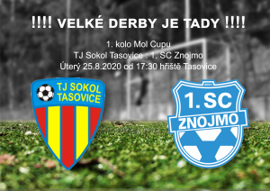 1. kolo MOL CUP, TJ Sokol Tasovice vs. 1. SC Znojmo, proběhne v úterý 25.8.2020 od 17.30 na hřišti v Tasovicích.