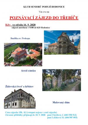 Klub seniorů Podyjí Hodonice Vás zve ve středu 16.9.2020 na poznávací zájezd do Třebíče. Více informací v přiložené pozvánce.