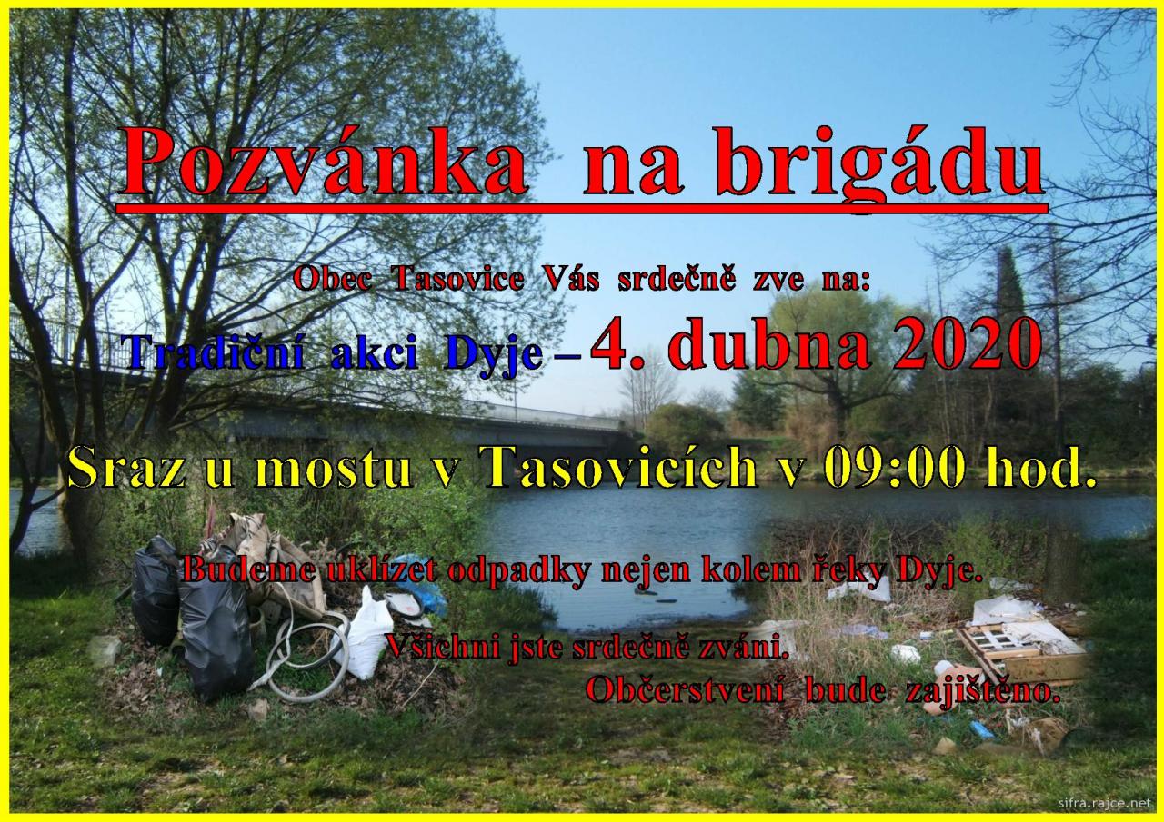 Po ukončení brigády bude zajištěno občerstvení u mostu v Tasovicích.