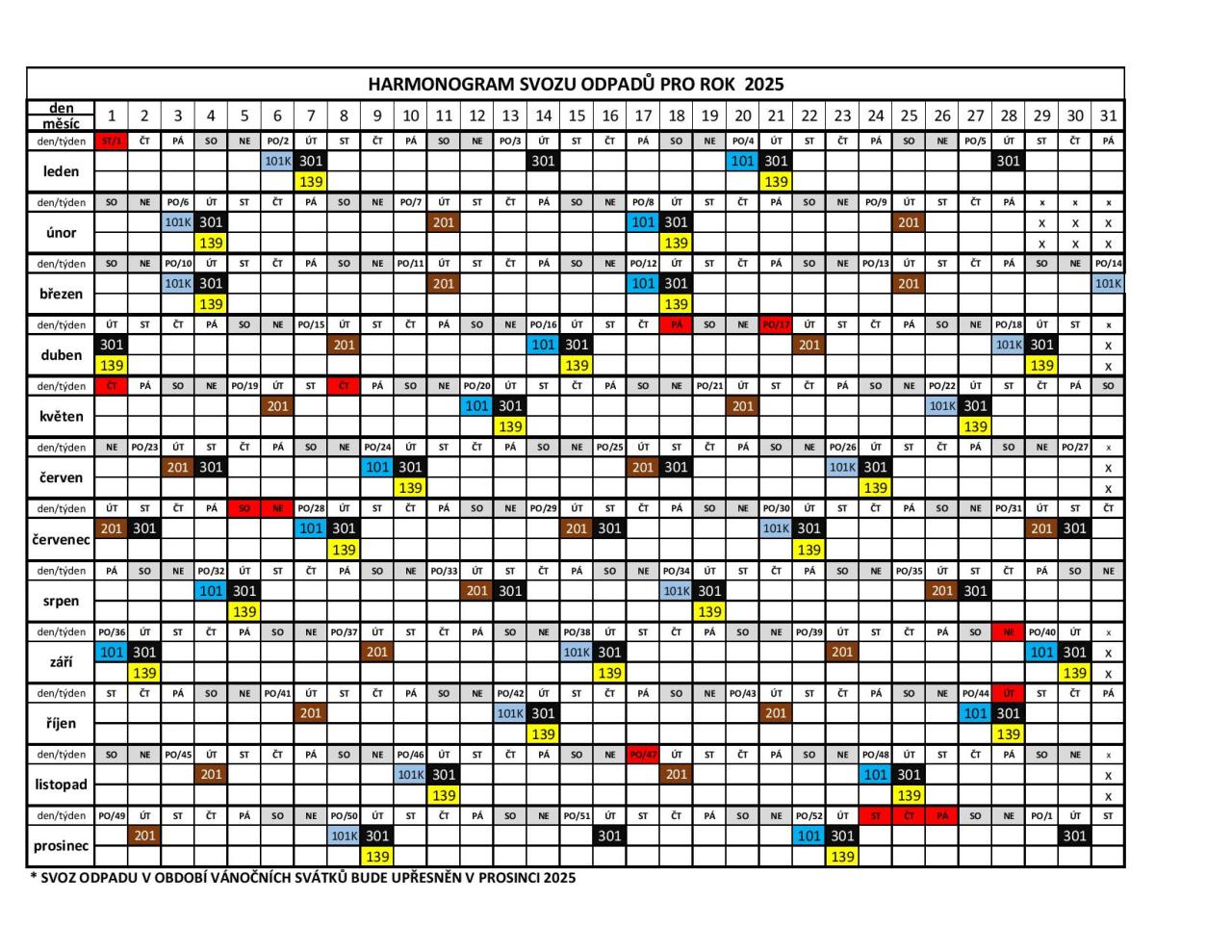 Harmonogram svozu odpadů 2025 (Typ: PDF dokument)