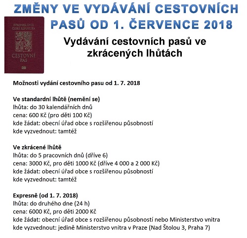 INFORMACE - ZMĚNY VE VYDÁVÁNÍ PASŮ A OP