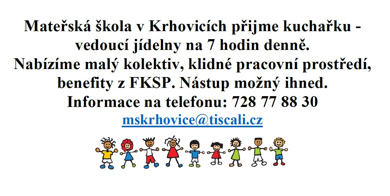 Informace na telefonu: 728 77 88 30 a emailu mskrhovice@tiscali.cz.