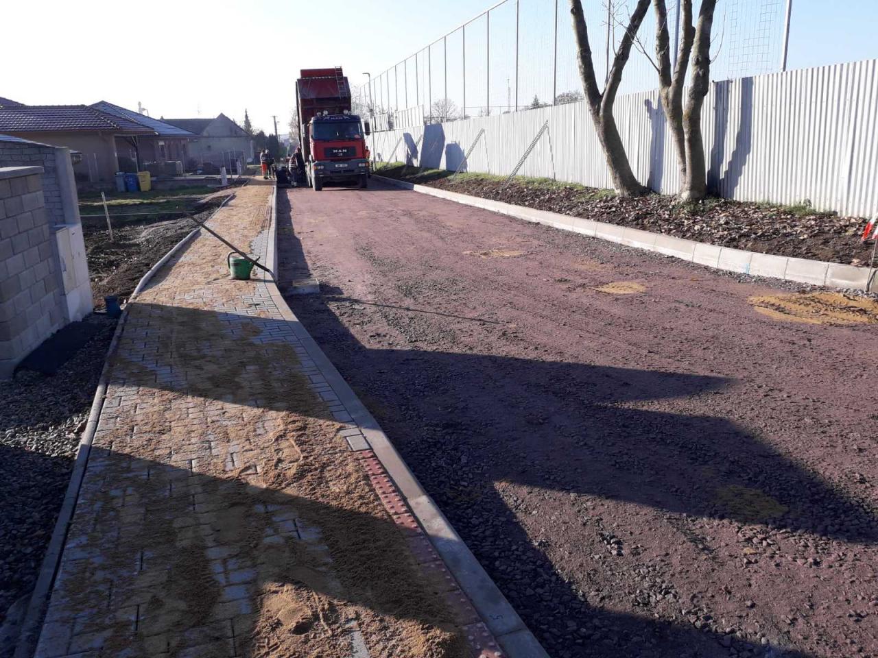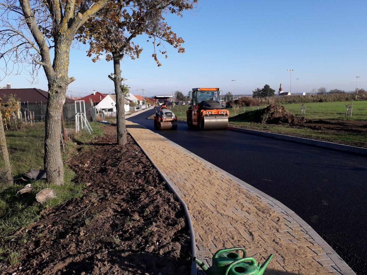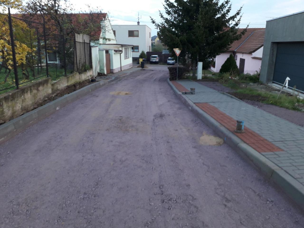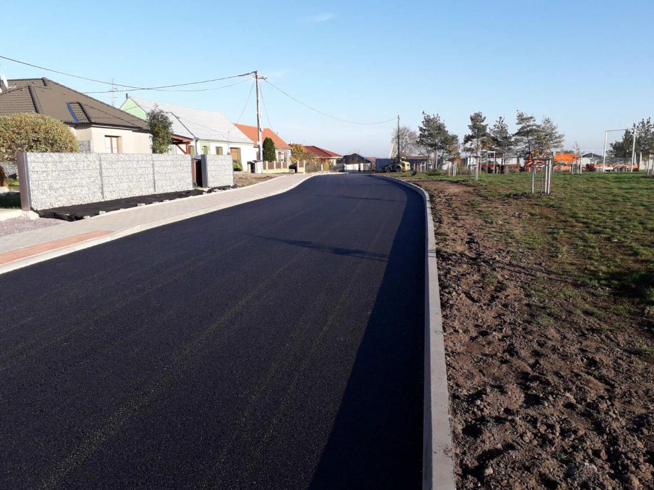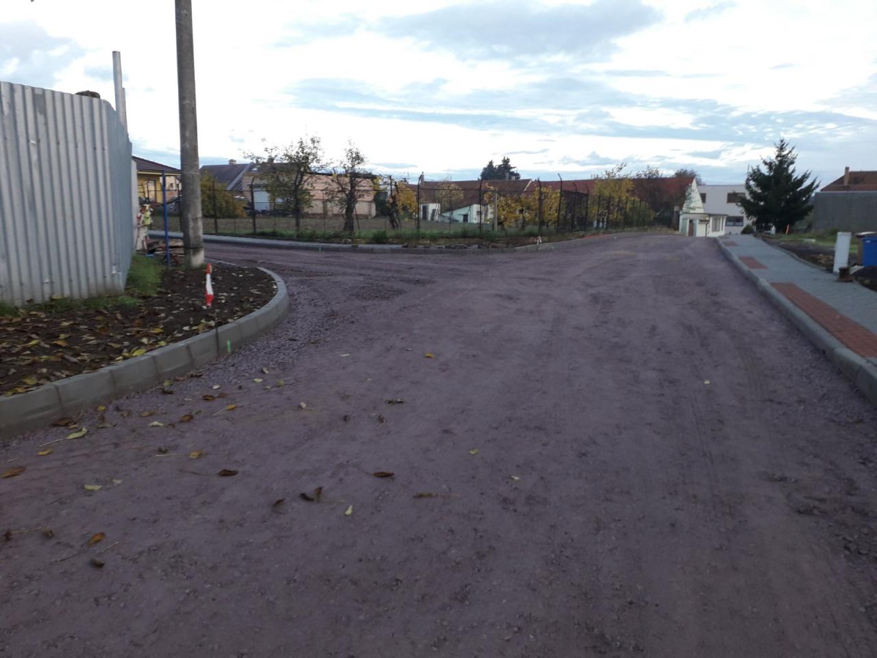Postup prací - rekonstrukce silnice za hřištěm. První vrstva asfaltu je položena, druhá se bude pokládat 16.11.2020.