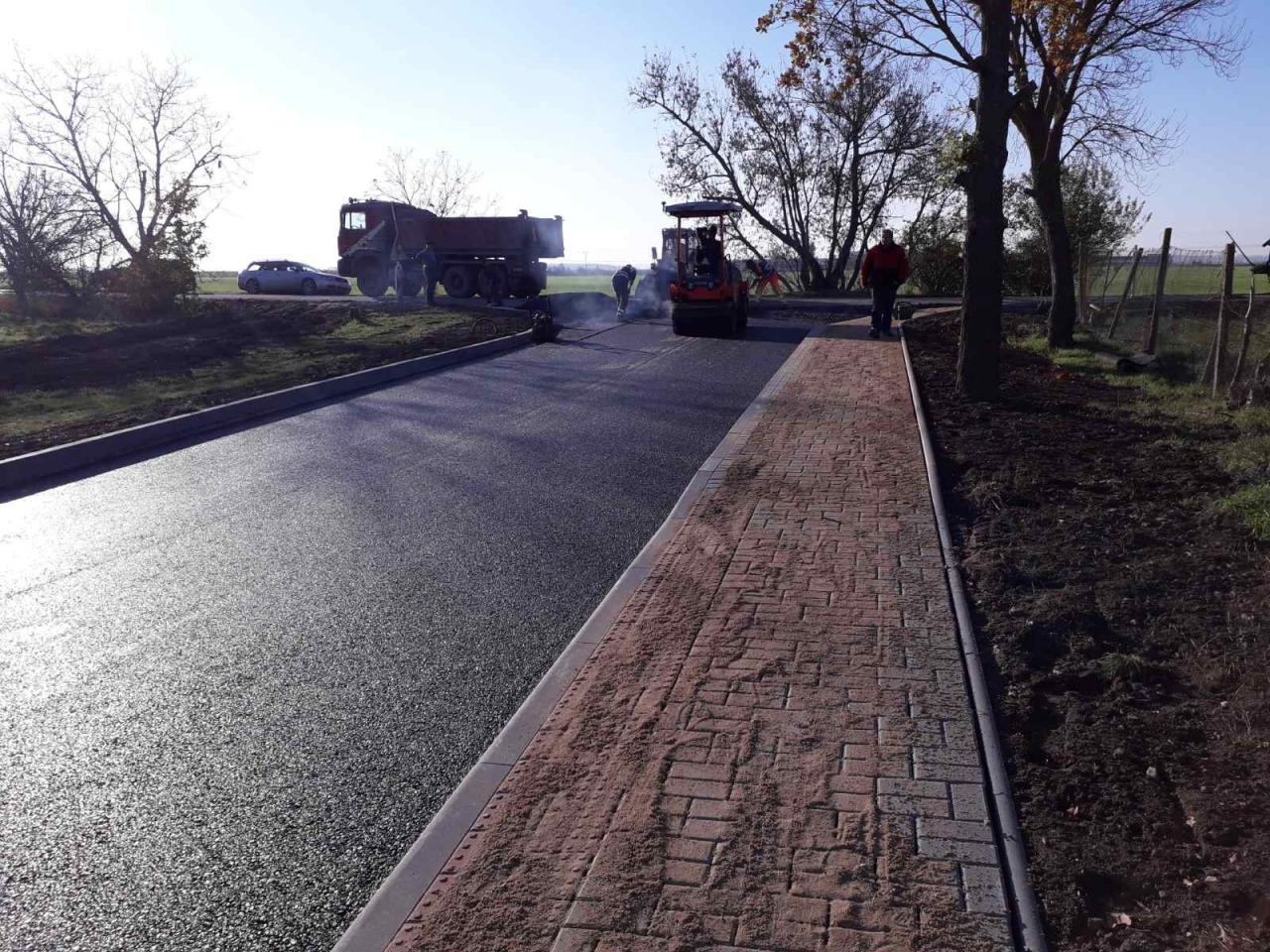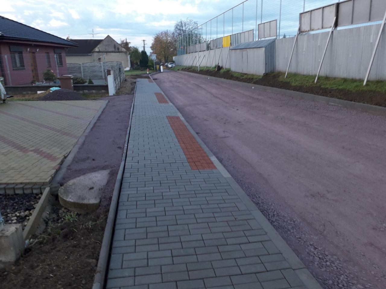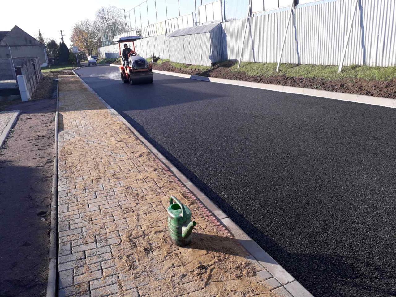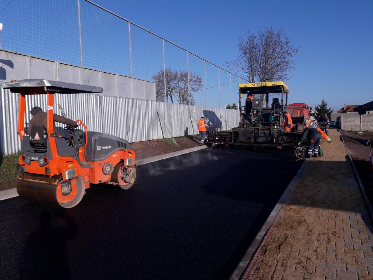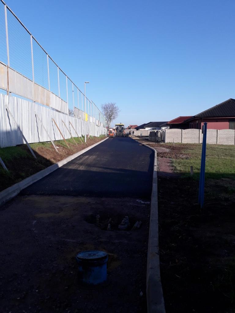 Postup prací - rekonstrukce silnice za hřištěm. První vrstva asfaltu je položena, druhá se bude pokládat 16.11.2020.