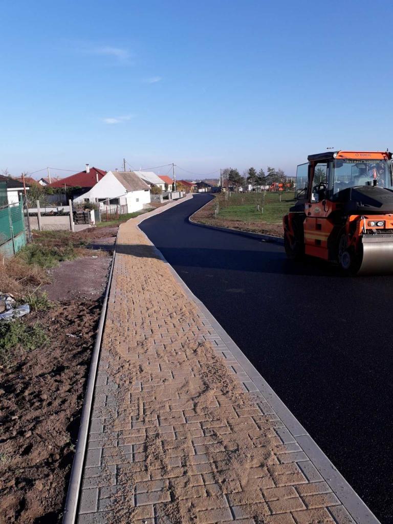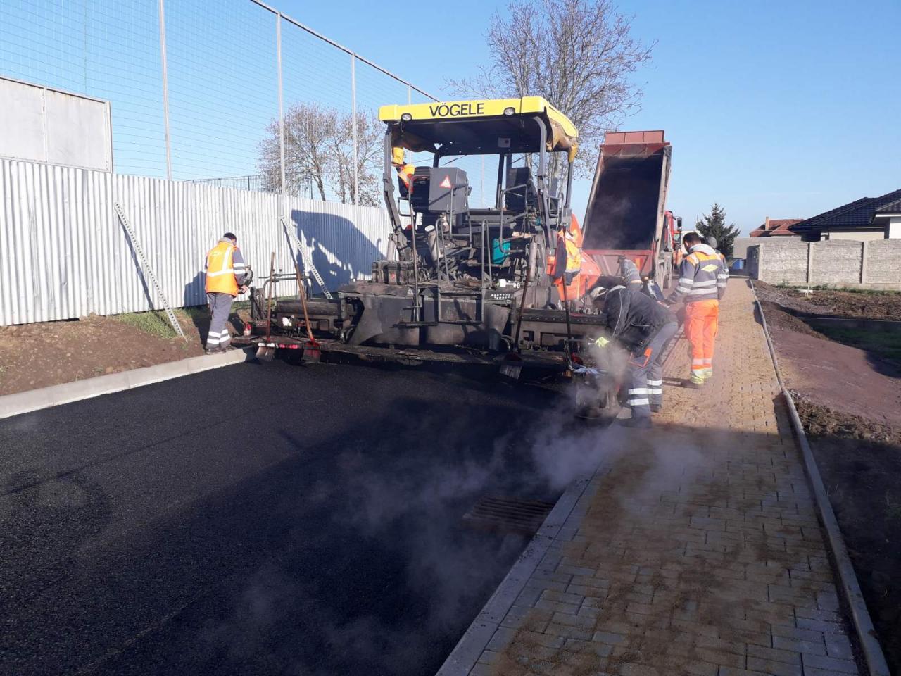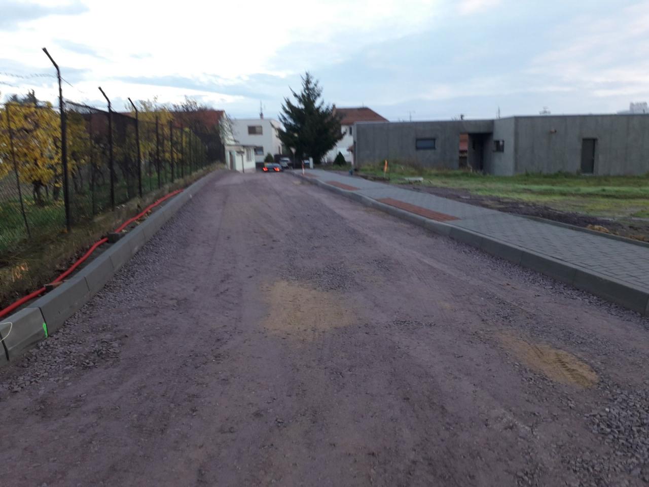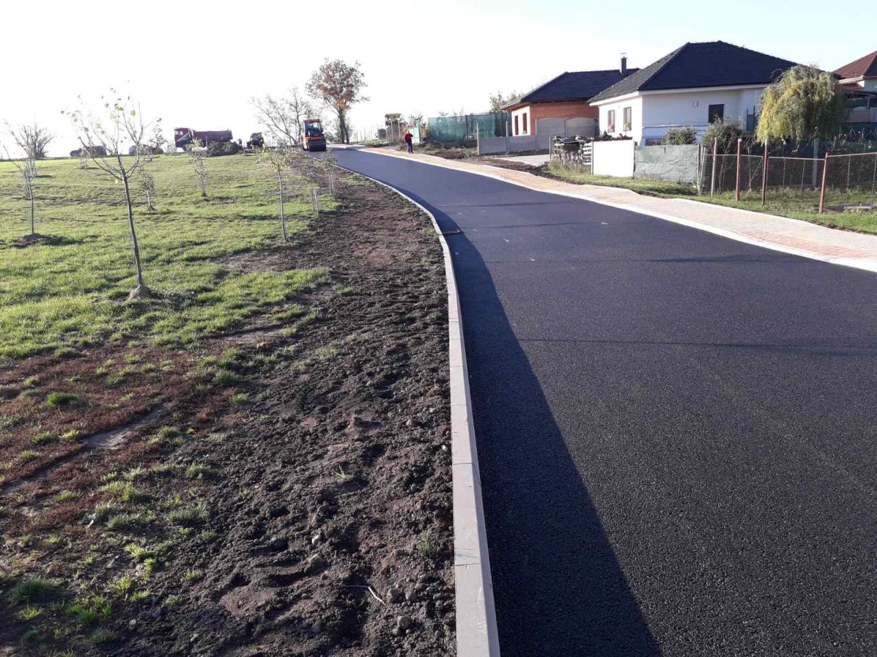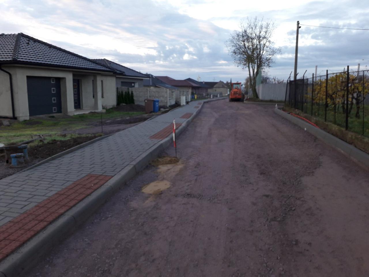 Postup prací - rekonstrukce silnice za hřištěm. První vrstva asfaltu je položena, druhá se bude pokládat 16.11.2020.