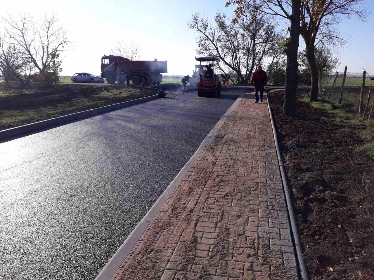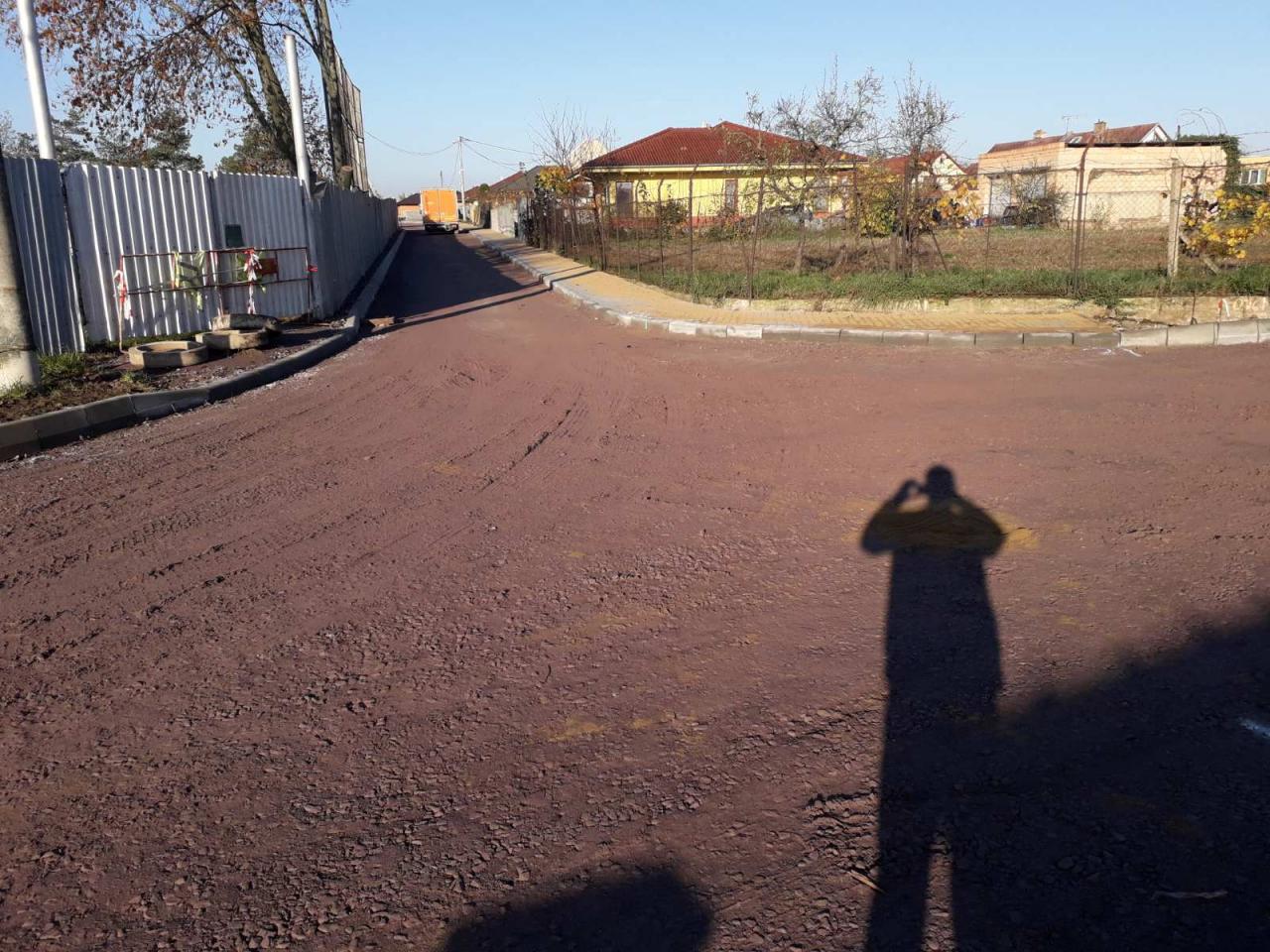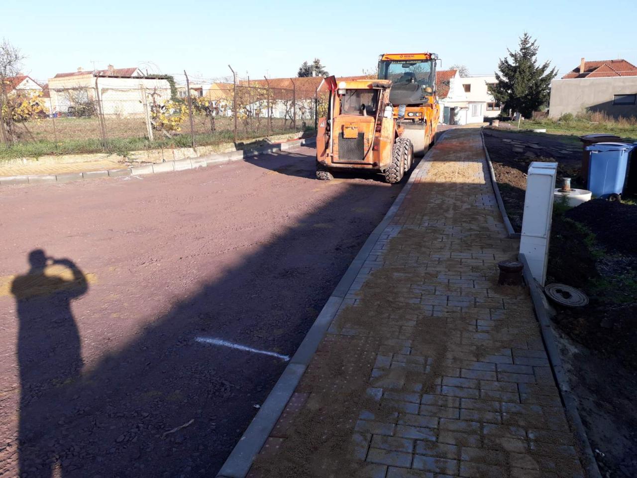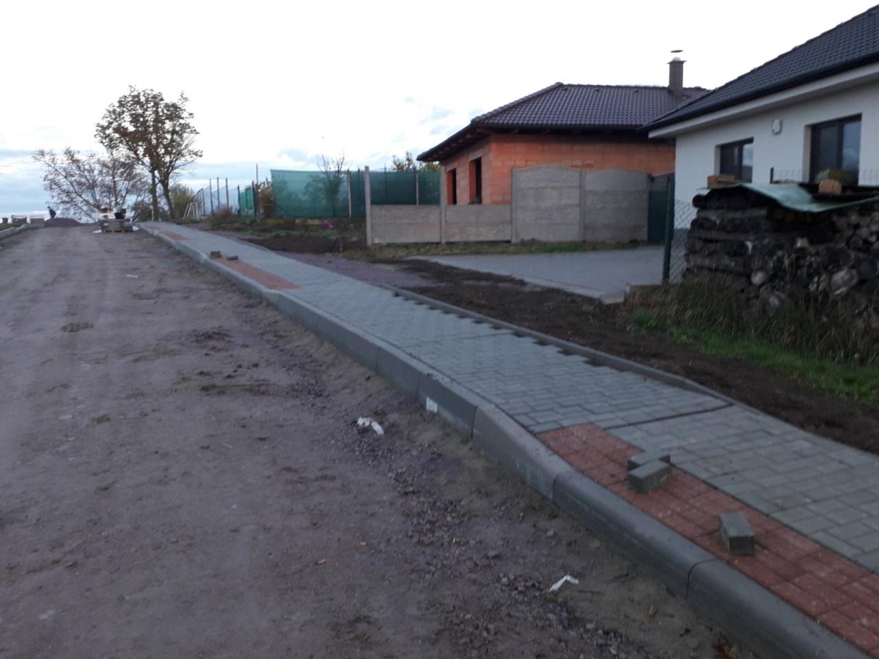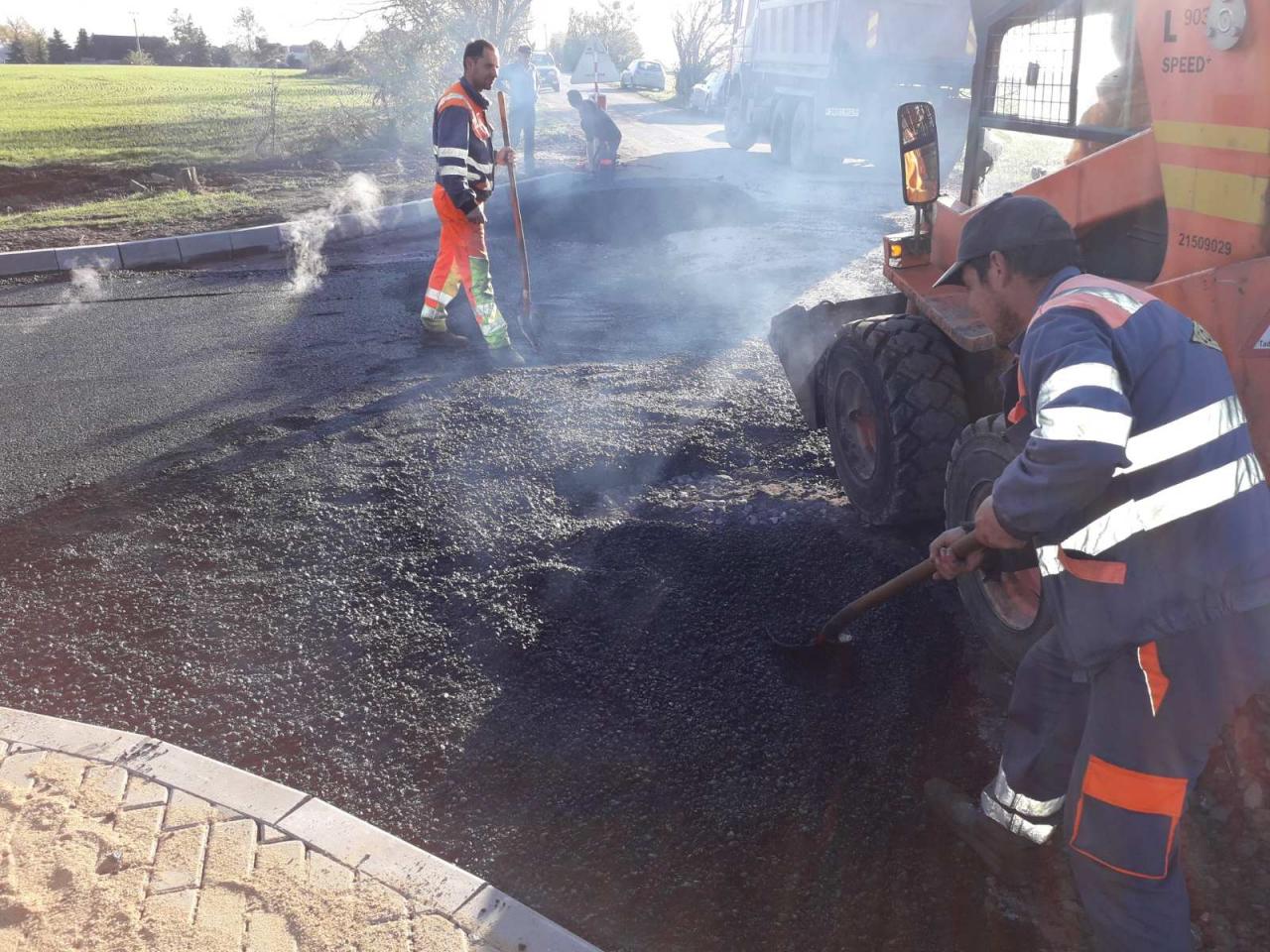 Postup prací - rekonstrukce silnice za hřištěm. První vrstva asfaltu je položena, druhá se bude pokládat 16.11.2020.
