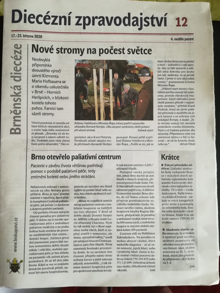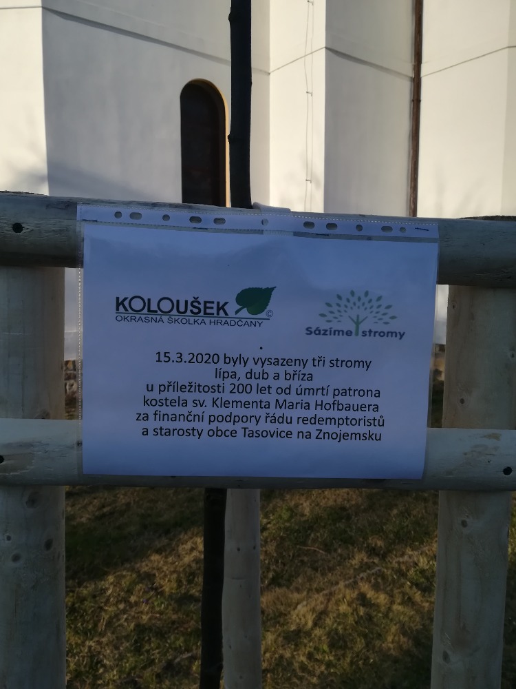 dne 15.3. 2020 v 15 hodin jsme v komornějším počtu místních farníků a občanů slavnostně vysadili i za Vaší vzdálené podpory tři stromy ( lípu, dub a břízu ) u příležitosti 200 let od úmrtí sv. Klementa Maria Hofbauera.