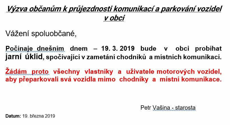 VÝZVA OBČANŮM - PARKOVÁNÍ VOZIDEL